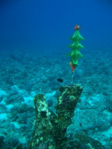 Canon PowerShot A520 f 2.6 1/250 sec Bluff Point, kicsi roncs. Karácsonyi díszbe öltöztette valaki az előttünk merülők közül:)