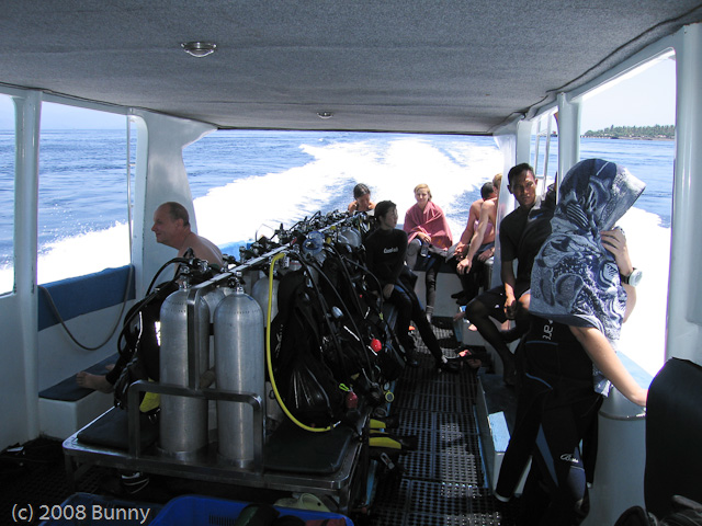 500LE repítCanon PowerShot S70 f/5.6 1/250 sec Úton a merülőhelyre, minden flottul összerakva, a dupla 250LE motor irgalmatlan tempóban visz minket. A térség leggyorsabb hajója, ami még kényelmes is, és az ellátást akkor nem is említem.