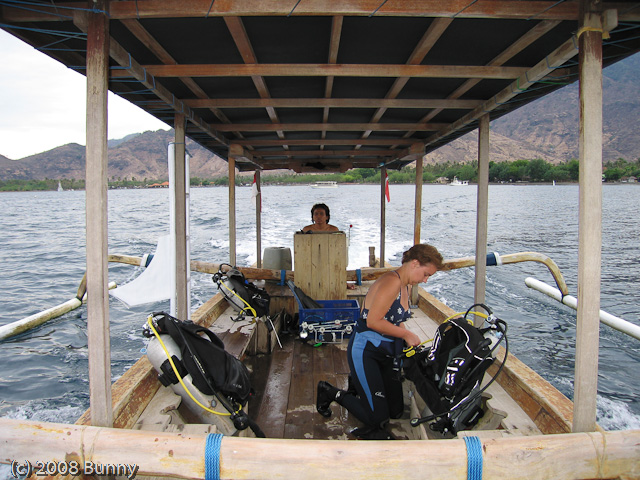 Local diveCanon PowerShot S70 f/3.2 1/250 sec Helyi merülésekhez ez a nagyméretű de hagyományos alapokon épült katamarán visz ki. Baloldalt a fehér a létra a kimászáshoz, beugrás pedig ...