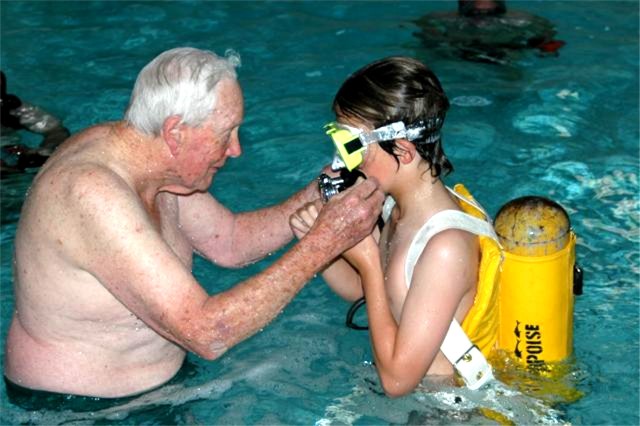 Ted Eldred unokájának mutatja meg a Porpoise-tforrás: www.therebreathersite.nl
