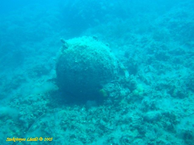 Vízalatti aknaőt nem szerettem volna látni. Nem is mentem a közelébe. Pedig ha elpukkan mindegy lett volna, hogy épp ott vagyok tőle 20 centire vagy ilyen messze. Igen ez egy második világháborús akna, szerencsére robbanószerkezet nélkül.