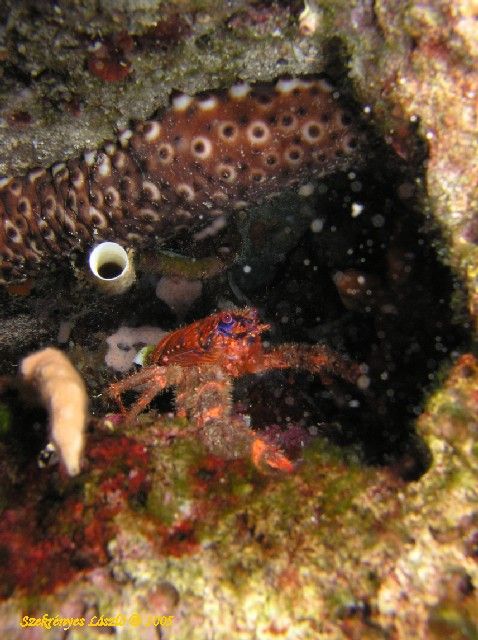Sepregető rákEzzel a helyes ízeltlábúval több nappali merülésen is sikerült találkozni. Persze a kedvenc helyük egy üreg volt, aminek bevilágítása nem egyszerű feladat. Most ennyire futotta.