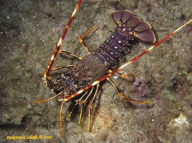 Languszta éjjeli sétánNappal az üregekben ülő languszták éjjel kint flangáltak a fenéken. Nagyszerű élmény volt ennek az apróságnak a szemlélése. Kint volt az egész család. Volt egy növendék is. Csak hát a nagy mellé nem fért rá a képre. :)