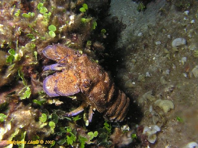 Medverák 1.Ebből a szép nagy rákból hárommal sikerült összefutni egy éjszakain. Na jól ekkor voltak a languszták is. Olyan nyüzsi volt lent, hogy egy apró kis medverák a jacketembe kapaszkodott. Csak a felszinen vettem észre a kis potya utast. Volt nagy meglepetés. Aztán persze visszaengedtük.
