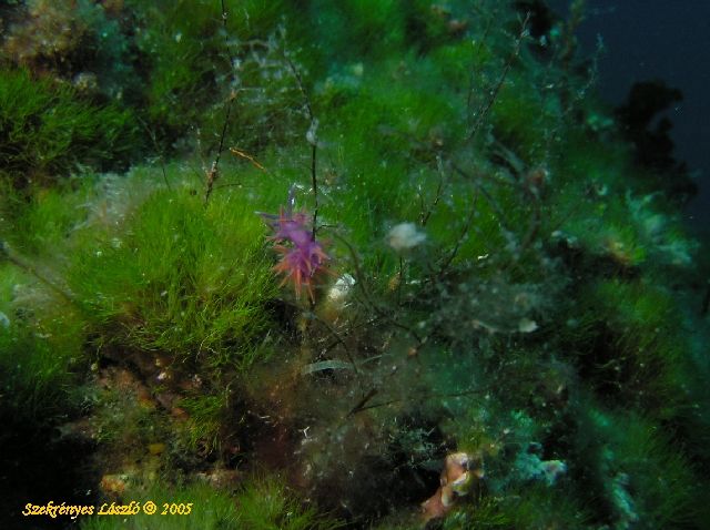 Lila fonálcsigaEgyszer talán majd közel is kerülök ehhez a pöttömhöz. Nem volt nagyobb 1 cm-nél. De milyen jól mutat a zöldön.