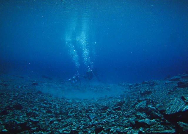 Grüner SeeA látótávolság csak a búvárok által felvert aljzatnak köszönhetően romlik.