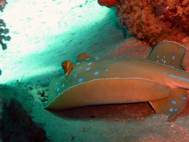 Taeniuria lymma-Kékpettyes rájaPanasonic DMC-TZ2 f/4.6 1/30 sec Feltöltő: yxygan , Megtekintve: 1389