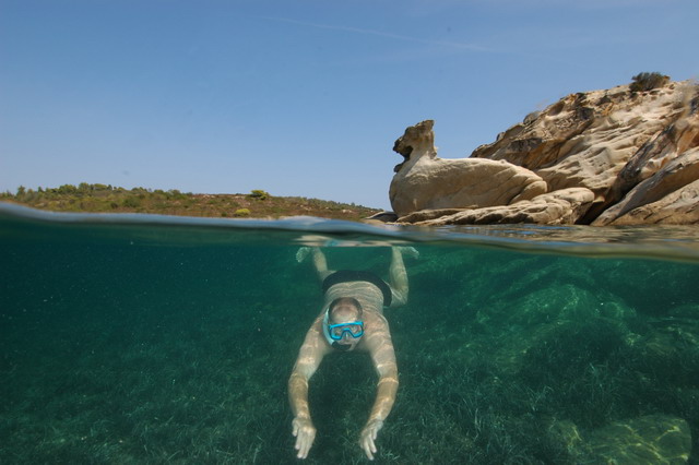Sithonia, Vourvouru mellett Diaphoros sziget egyik öble..