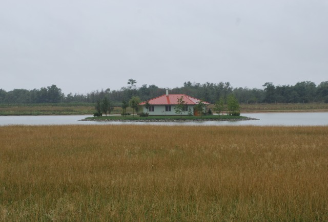 Ház Sárvár előtt a 88-as út mellettA mező közepén, kerítés mögött áll a ház, amit a tulajdonosa vizesárokkal vett körül. A ház megközelítése (amennyire az útról látszik) csak csónakkal lehetséges. De a csónak se látszik...