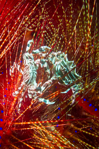 ZEBRA CRAB Zebrida adamsiiCanon PowerShot G11 f/7.1 1/100 sec Tűzsün tüskéinek védelmében éldegél.