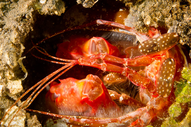 Gorlock Mantis Shrimp Lysiosquillina lisaCanon PowerShot G11 f/8 1/320 sec Kibújva nem nagyon látni.