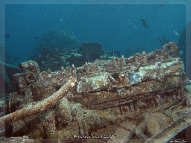 Roncs motorokAbu Ramada East, 5 méteren van egy hajóroncs, a két motor a jellegzetesség rajta.