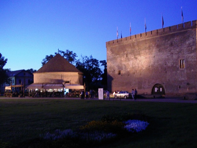 A gyulai vár és a lőportorony (Rondella). Nyáron a teraszon szuper kis kocsma üzemel.Pentax PENTAX Optio 33L f/2.6 1/4 sec A vár egyébként Európa egyetlen ilyen szépen megmaradt síkvidéki téglavára.