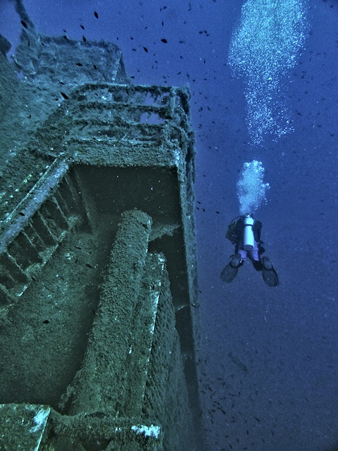 Roncsot fotózni nem (vagyis azt sem) könnyű, meg van is aki nem nagyon kedveli mint témát. Néha érdemes vele kísérletezni, mert hatásos lehet a végeredmény, megvan a varázsa a víz alatti maradványoknak, én például a merülőtárssal tudatos voltam, megmutattam neki, hova és hogy álljon- nem véletlenül. Ilyenkor érdemes kicsit előre is egyeztetni.