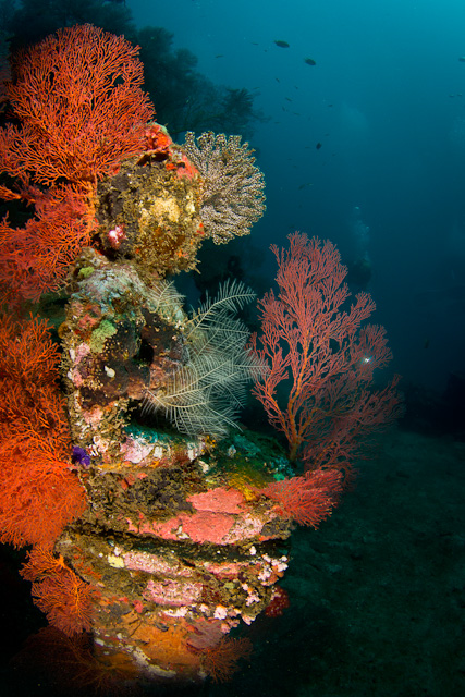 Korallvirág szülötteElsüllyesztett Buddha szobor, amit teljesen körbenőtt a korall.