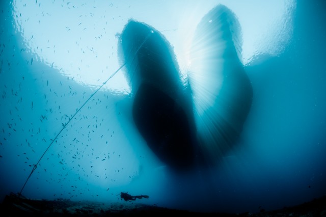 Mother and child and the horror belowNikon NIKON D300S f/7.1 1/250 sec Two safari boats, basking in the Egyptian sun rock gently on the calm surface of the morning Red Sea. But beneath the tranquil scene lies the tomb of hundreds: the wreck of the ill-fated ferry that struck Hyndman reef near midnight on 17 December, 1991. The dive is emotionally challenging, the belongings of those many that perished still fill the holds, one of the bags hold the sign "happy journey". But at the surface all is calm - Cassiopeia, the proud mother seems to show off with her beautiful daughter, Andromeda, who is cherished with sunlight.