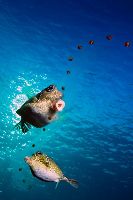 "beads"Nikon NIKON D300S f/11 1/100 sec Two pufferfish eat salps ...