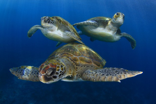 Follow meCanon EOS 7D f/16 1/160 sec The carapace of the green turtle has various color patterns that change over time. Hatchlings of C. mydas, like those of other marine turtles, have mostly black carapaces and light-colored plastrons. Carapaces of juveniles turn dark brown to olive, while those of mature adults are either entirely brown, spotted or marbled with variegated rays. Underneath, the turtle´s plastron is hued yellow. C. mydas limbs are dark-colored and lined with yellow, and are usually marked with a large dark brown spot in the center of each appendage. When I take a picture I always try to transmit a feeling to the viewer, and let the picture tell me a story. That requires much time and dedication to each picture, and a great passion for the underwater world. This picture is the result of all this. It needed many hours of patience to get this perfect instant. In most cases there is just one chance for the perfect picture, and you have to be there, prepaired with the finger on the trigger, everything correctly adjusted, waiting for the correct moment.