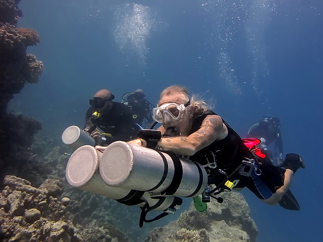 Nekem az az itt készült video még jobban tetszett amin a delfin odavisz egy korall darabot a búvárnak és később visszaveszi a kezéből. Egyszer egyikük nekünk is előkotort fúró módjára forogva egy halott korallt a homokból de nem adta oda, csak odahozta és mutogatta. Irigy dög. :) | ||