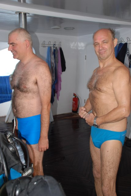 Közben gondosan ügyeltetek az úszónadrágok színbéli harmóniájára. Dícséretes!