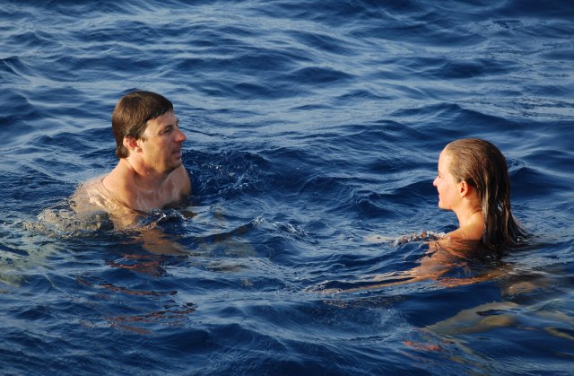 Közben gondosan ügyeltetek az úszónadrágok színbéli harmóniájára. Dícséretes!