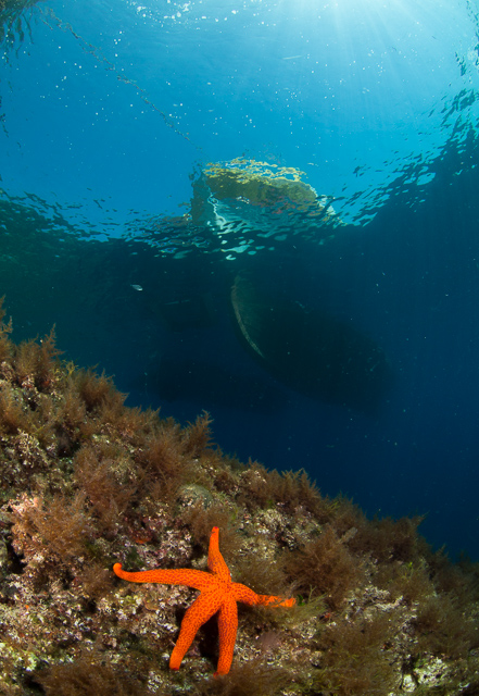 Adriai képeslapOlympus E-PM1 f/16 1/80 sec Tengeri csillag háttérben a Riba-T és az Obelix hajóval.