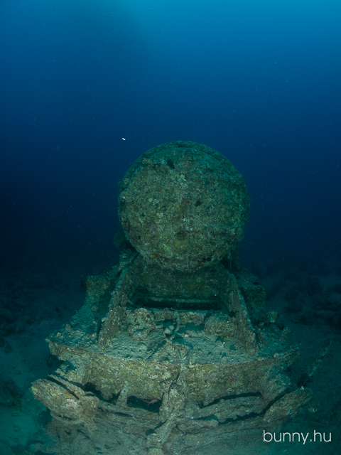 Thistlegorm LMS Stanier Class 8F mozdonyOlympus E-PM1 f/5 1/160 sec Ezt a mozdonyt kicsit nehéz megtalálni, mert a roncstól távolabb repült a robbanásban (sejthető mekkora volt, ha eldobott ez mozdonyt). Egyébként ketté is szakad, ez csak az orr része.