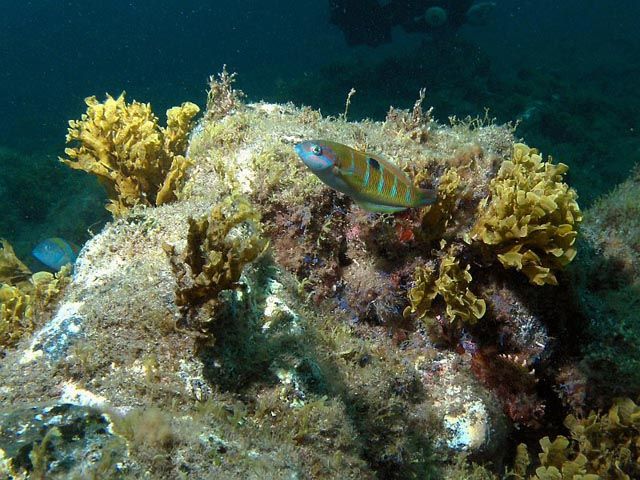 Szikla és halTipikus víz alatti látkép az Arinaga nemzeti parkból.