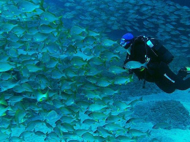 Hal-falElőször szétnyílnak a halak a búvár előtt...
