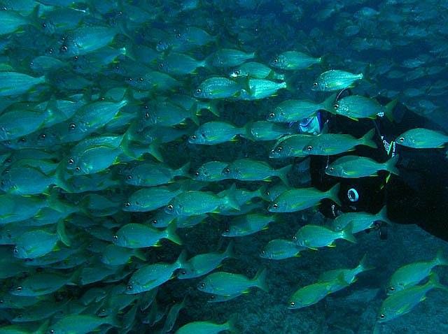 Hal-fal...aztán a búvár már a halrajból néz ki.