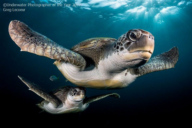 Green Turtles in the rays - Greg LecoeurPortrait Commended