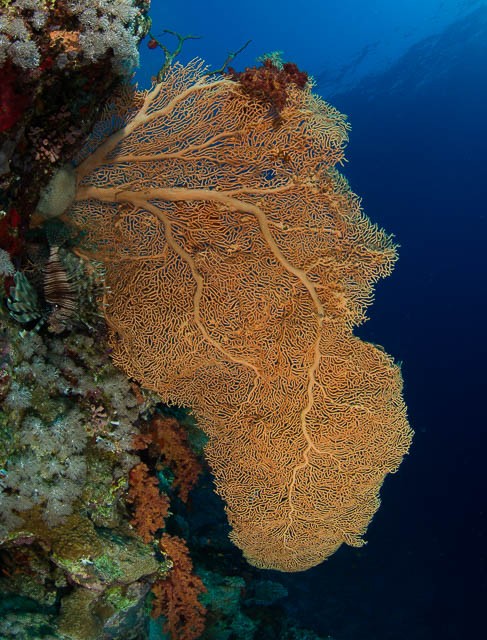 Dél-AmerikaOlympus E-PM1 f/11 1/160 sec A legyezőkorall formája fogott meg, mintha Dél-Amerikát látnám, folyókkal, mindennel. Sajna a tűzhal nem kívánt pózolni, inkább elbújt.