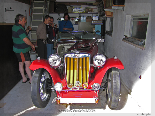 1934-es MGAz apartman tulajdonos büszkesége, egy (múlt)század eleji angol MG. Működőképes, veterán autó, körülötte a csapat javarésze ámuldozik.