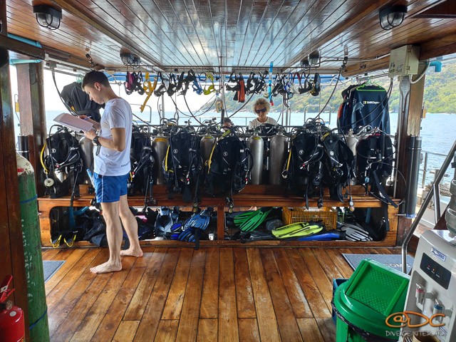 Búvár fedélzetXiaomi Mi 9 SE f/1.8 1/100 sec A búvárok kényelmes fedélzeten készülődhetnek, a felszerelés bőven elfér.