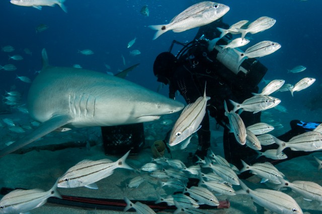 Shark handlerf/8.0 1/100 The picture was taken during a shark dive off the coast of Florida, Jupiter.