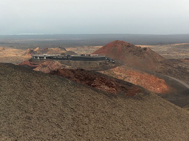 Látogatói központA Timanfaya Nemzeti Parkban nem volt nehéz krátert találni, ami felé odaépíthették. Itt van a vulkán hőjét kihasználó grillsütő.