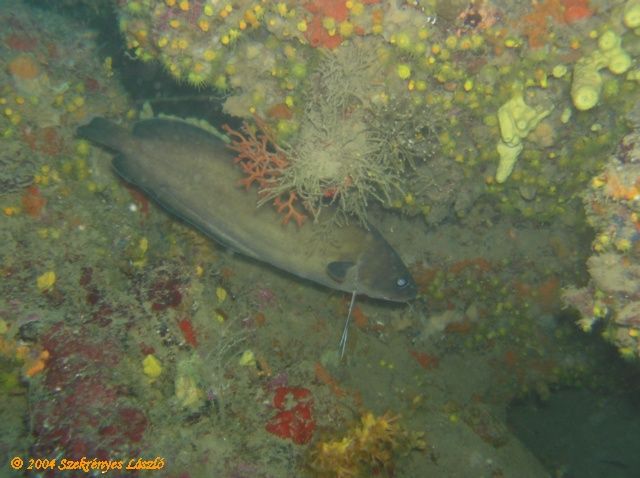 MenyétkeEgy másik szuper merülőhelyen a Punta Galeránál sikerült lefotózni a menyétkét. Kicsit mély a hely, 38-on elkezdődik egy hihetetlenül gazdag vörös gorgónia mező. Állítólag 50-ig tart. Mi 42 alá nem mentünk. Méteres vörös legyezők közt úsztunk. Szuper volt.