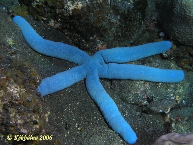 Kék tengeri csillagAdrián és Vörös-tengeren nevelkedve kicsit nehéz volt megemészteni van kék csillag. Először egy ismerősöm mesélt róla. Nem hittem neki. Lent minden kék gondoltam. Erre tucatjával hevernek a szürke vulkáni hamun ezek a méretes jószágok.