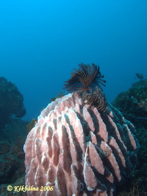 Szivacs tollcsillaggalEz a nagy bödön ilyen helyes pamacsokat húzott a fejébe. A divat a vízalatt is divat.
