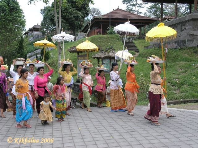 Imára tartva BesakhibanEz a népes tömeg az egyik nagy templomba - Beshakiba - indul imádkozni a sok isten egyikéhez. Mindnek külön temploma/oltára van. Elől a nők aztán a férfiak külön. A hölgyek menszesz alatt nem látogathatják a templomot.
