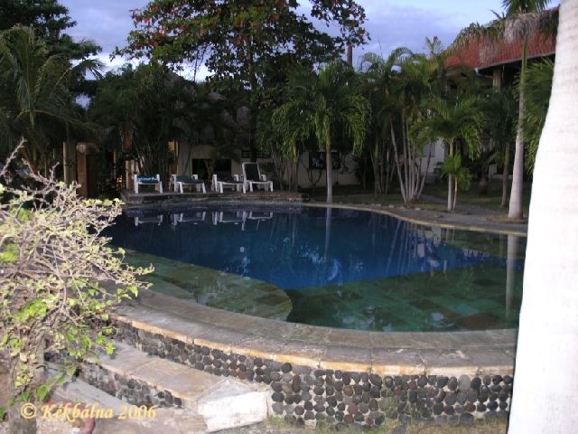 Tauch Terminal Tulamben - A medenceSzuper jó a vize. Először úgy gondoltam á én ide minek menjek, ha szemben meg ott a Csendes-óceán. Aztán szép lassan beleszoktunk. Jó volt a sós víz után a kimondottan meleg édes víz. Közel volt a beach bár és a söröcske. A medence aprónak tűnik pedig a tulsó végén 4m mély.