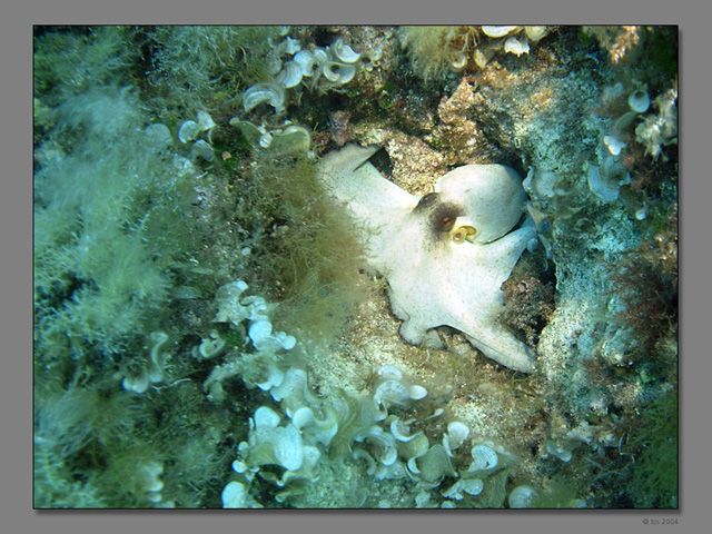 polip...akinek már nem maradt ideje elbújni, ezért nem is vesztegette színválotztatásra az energiáit: egybôl küldte a paráztató ábrázatot. Néhány kocka után útjaink külön váltak és ôkelme megnyugodhatott...