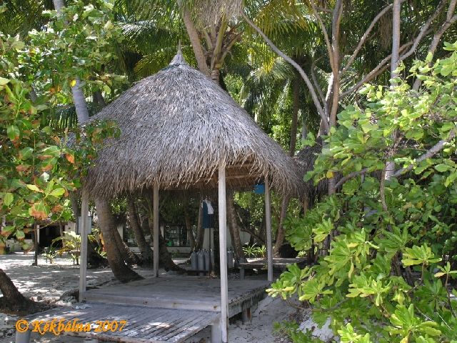 Ponyva maldív módraUgye minden partról merülőnek ismerős a ponyva, amit a merülés előtt öltözőnek és szerelőhelynek használ. Na itt ilyen a ponyva funkciójú kis házióka. Seprű és kis doboz a szemüvegeknek, ez mind része a helyi luxusnak. :)