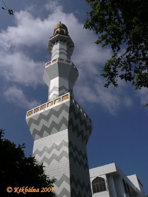 MinaretNem olyan régi, mint az egri. Ez viszont még működik,lévén a Maldív-szigetek muzulmán ország. Szerintem ez egyben a szigetek legmagasabb pontja és egyetlen minaretje. Kis ország, kis csodák. A főváros is csak két négyzetkilométer.