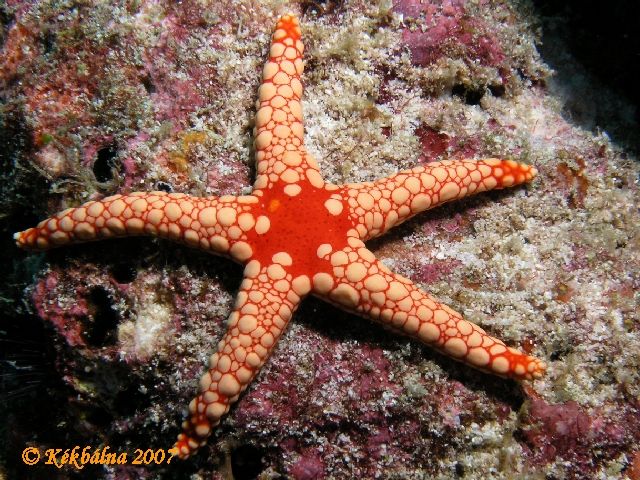 Maldív tengericsillagEz a faj emblematikus állata a Maldív-szigeteknek. Ezekben a vizekben őshonos ez a pöttyös tengeri csillag.