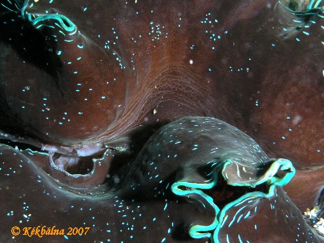 Óriás kagyló redőkHa elég óvatosan úszik az ember akkor benézhet az óriás kagyló "szájába" és ilyen szépet lát.