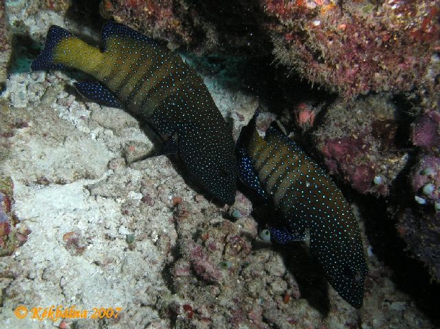 Korall sügér párA house reef tele volt ezzel a kék pöttyös sötét alapszinű sügér fajjal.