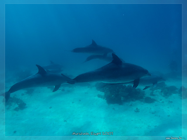 DelfinekSha´ab El Erg megbízható delfines hely, kár hogy csak átúsznak általábban a búvárokon, ritka amikor megállnak kicsit játszani, és mivel a víz kissé opálos volt az ember már csak azt veszi észre, hopp, elúszott mellette egy delfin falka. Fotózni ezért nem jó, de az élmény ...