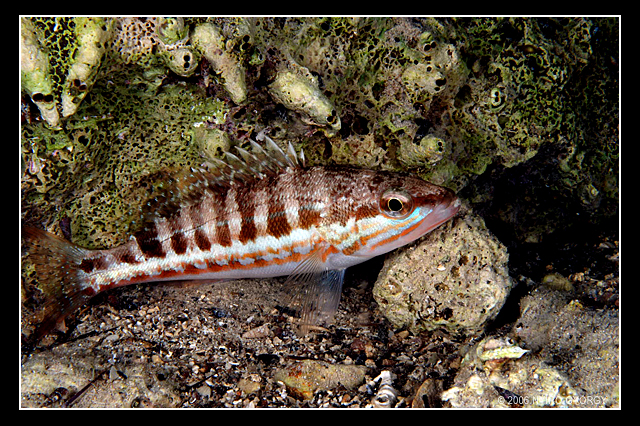 ÉjszakaNIKON D80 f 22 1/90 sec Kapva a lehetőségen, csatlakoztam az éjszakai merüléshez jelentkezőkhöz. Este 9 órára létszámunk -a merülésvezetővel együtt- 4 főre redukálódott. Igazából sok képet nem készítettem, bár társam bőven szolgált témával. Eme kis hal poziciója (mint párnára hajtaná fejét) valahogy megtetszett.