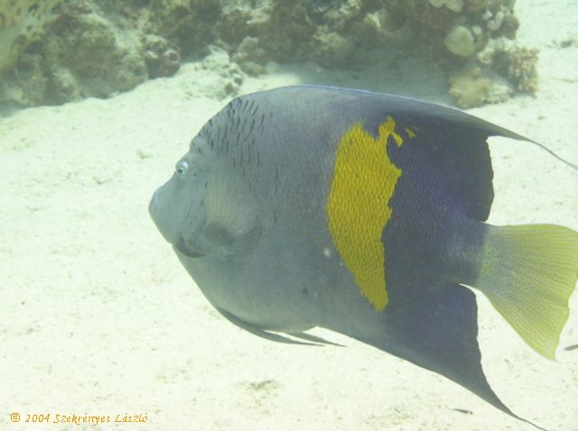 Ez a szép nagy arab császárhal egy áramlásos merülésen úszott elénk. A hajó előtti spiccre kiérve várt ez a 70-80 centis példány. Nem nagyon akart modell lenni.